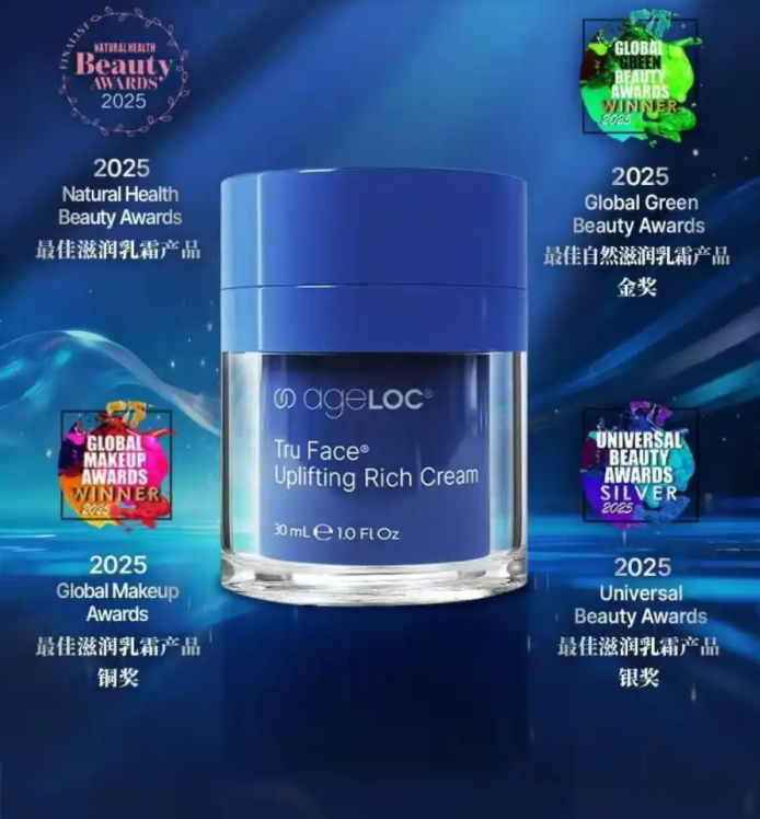 欧睿国际最新调研数据显示,如新是 2023 和 2024 连续两年全球零售额第一的美容与健康仪器系列公司(数据源自 Euromonitor International Limited;按 2023 和 2024 全球各公司居家美容与健康仪器系列整体零售渠道零售额,不包含美容院线服务,于 2025 年 7 月完成调研),彰显了其在仪器护肤领域的全球领先地位。在 2025 Global Makeup Awards(2025年度全球化妆大奖*)评选中,如新产品凭借出众的产品力在近十个品类中脱颖而出,收获多项重磅奖项:ageLOC Tru Face Refining Toner(活颜精萃水)荣获最佳护肤产品银奖*;ageLOC Tru Face Uplifting Rich Cream(活颜倍弹紧塑霜)与ageLOC Tru Face Essence Ultra(活颜倍弹源液)分别斩获最佳滋润乳霜产品铜奖及最佳精华产品银奖*。近期推出的超光谱智能扫描仪 Prysm iO 荣获 2025 年度 Blobee Business Awards 年度创新产品银奖*。