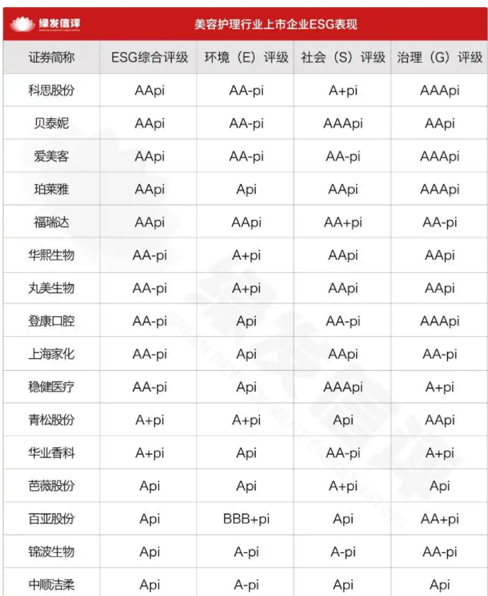 中国财富网讯美容护理行业不仅承载着颜值经济的发展诉求,更肩负着绿色低碳、责任消费的时代使命。ESG理念正成为行业高质量发展的隐形引擎,推动企业从产品创新到运营管理的全链路升级。海南绿色发展信用评级有限公司(以下简称“绿发信评”)发布的A股上市公司ESG主动评级结果显示,美容护理行业头部企业已率先布局ESG实践,形成了较为完善的可持续发展体系,为企业的长期稳定发展奠定坚实基础。