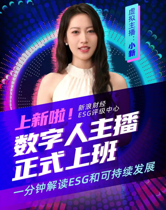 3月10日起在微信视频号“新浪财经”、微博账号“ESG评级中心”,关注#ESG数字人主播#,即可让数字人主播“小新”,成为您商业决策的ESG信息导航员。